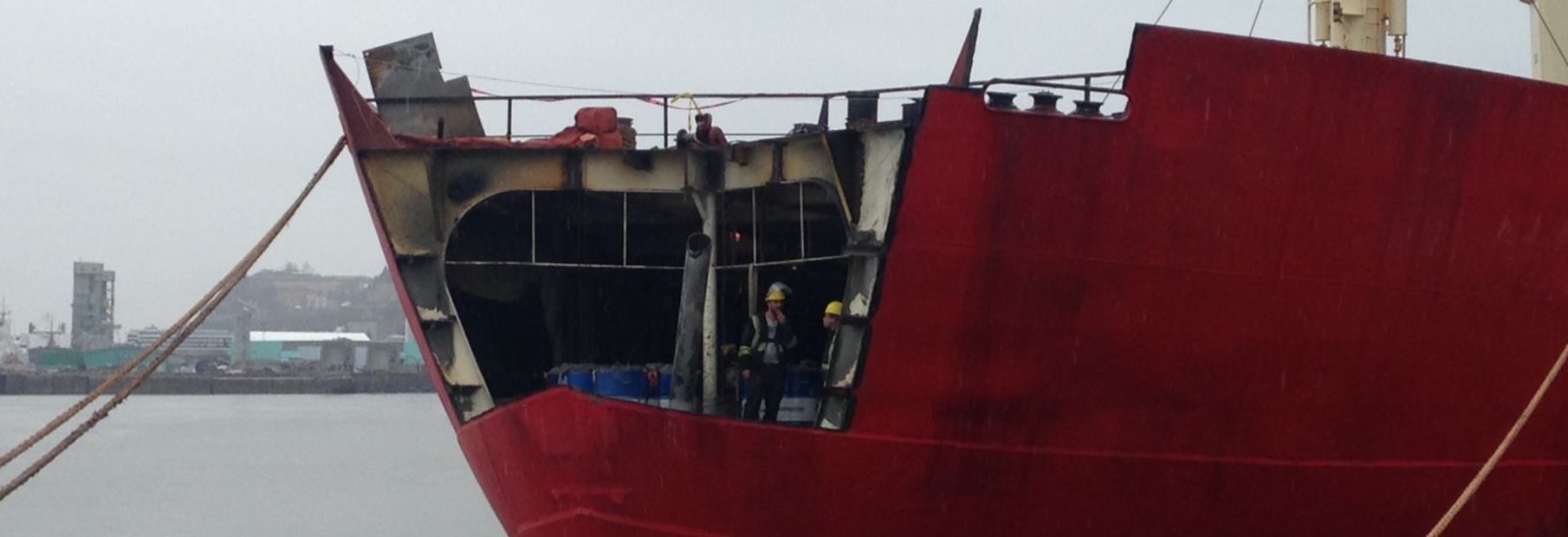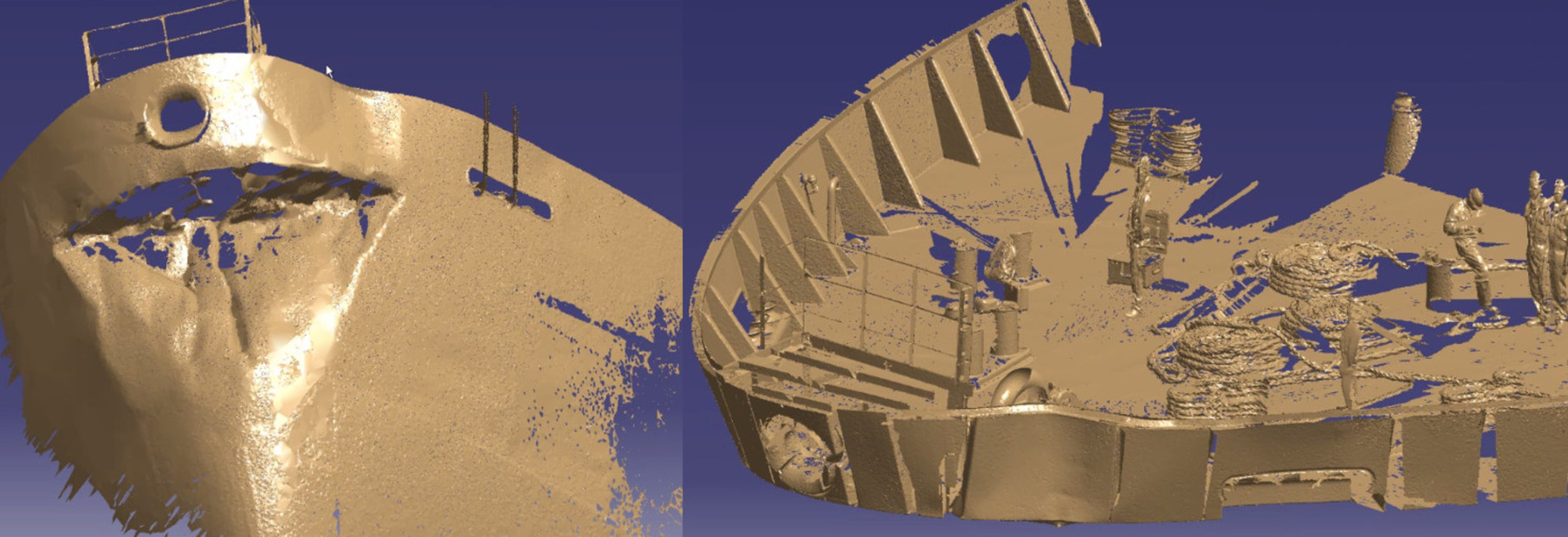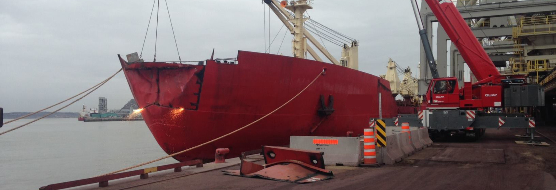 In parallel with the manufacture of the replacement part, a team undertook the cutting of the damaged bow to prepare it to receive the part designed in Matane.