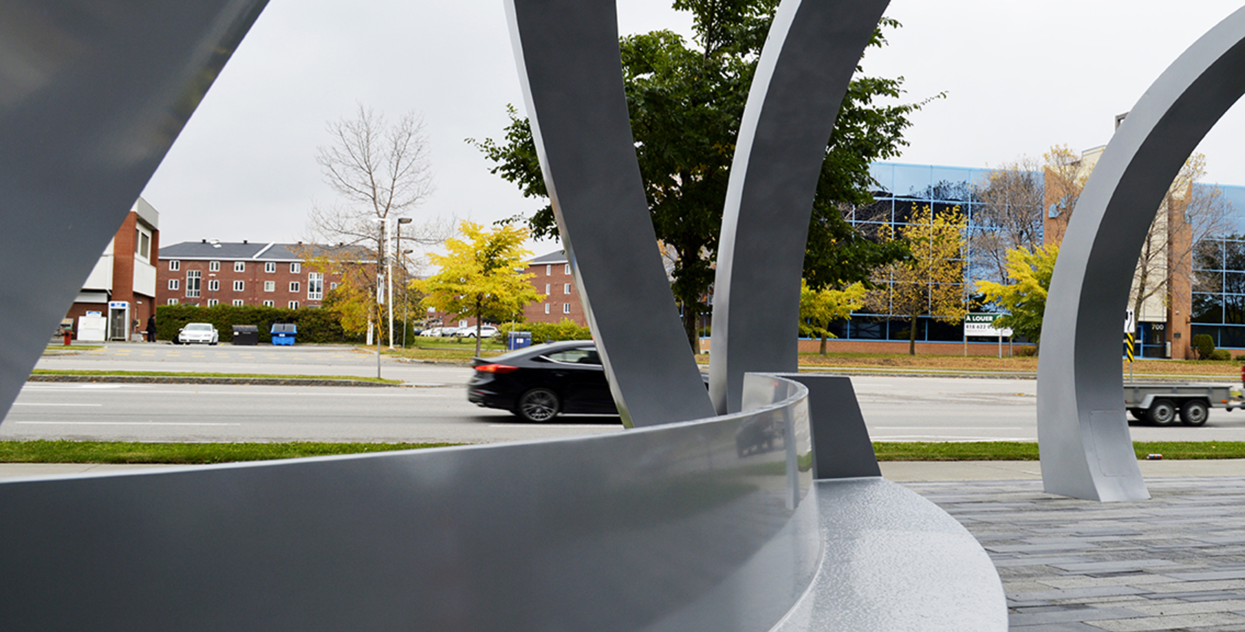 La présente installation se définit tout d’abord en tant que mobilier urbain. Tout en se déployant dans le lieu, la structure crée un espace directement destiné à l’usager de la place.